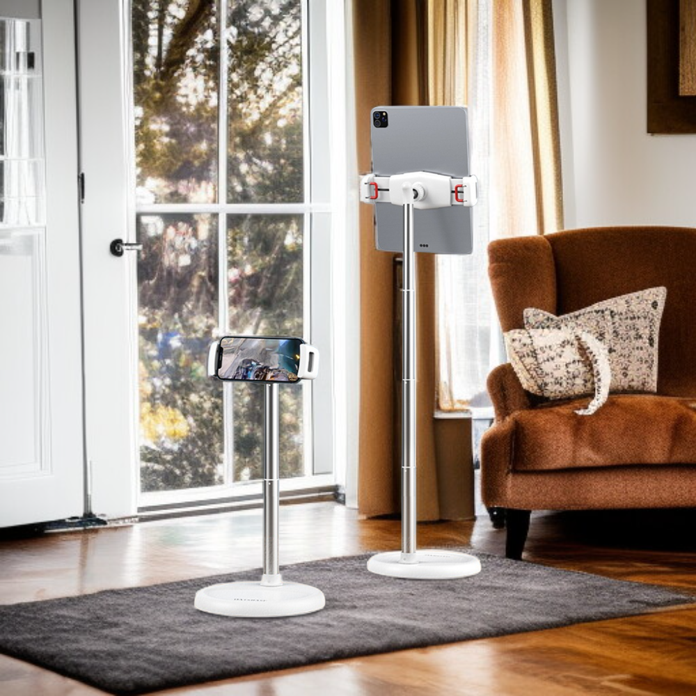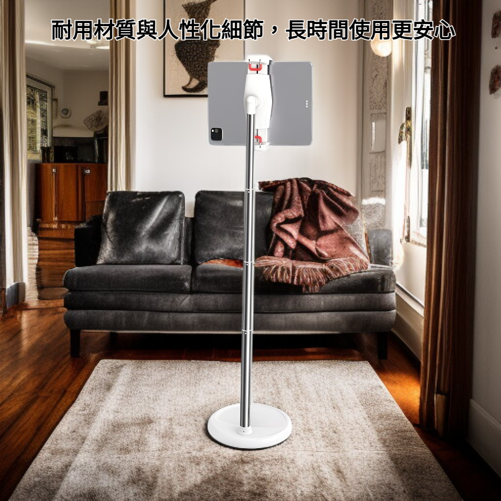 ● 穩固耐用設計,手機落地支架採用高品質金屬材質,能穩定支撐各種尺寸手機,讓您安心追劇、視訊不搖晃。